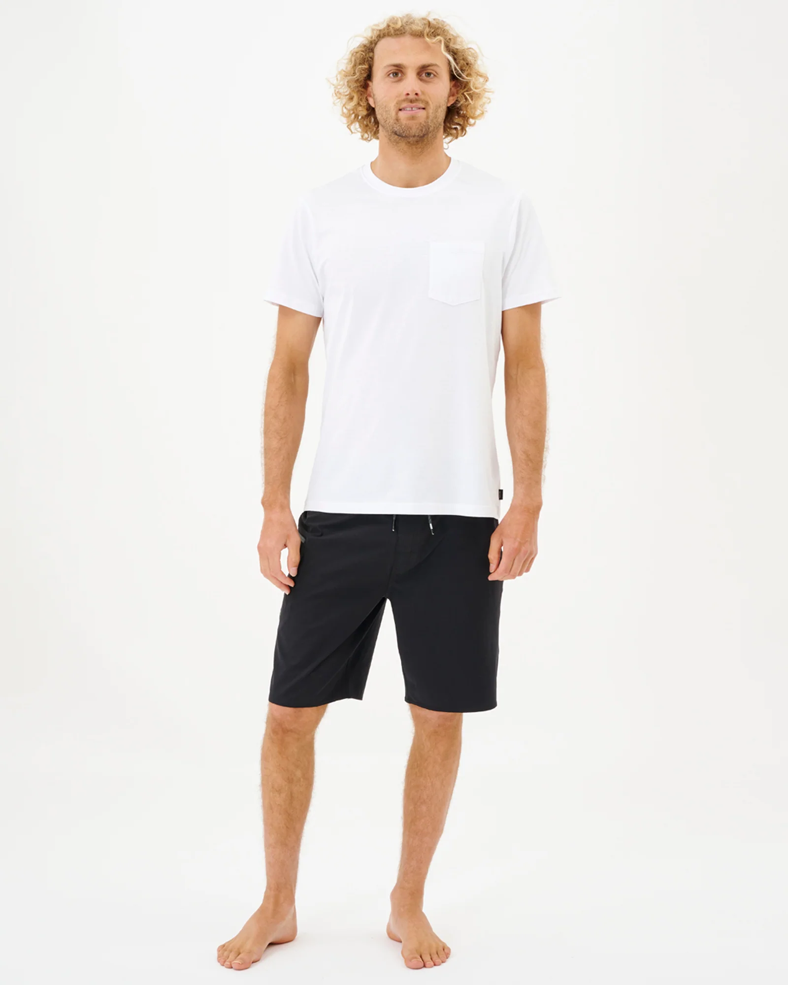 Add style to simplicity with the Plain Pocket Tee, showcasing a front pocket and woven flag label for a comfortable and practical surf look.